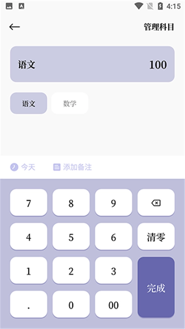 3、进入考分板块,能够设定考试分数目标、选择科目,并备注完成后的奖励。