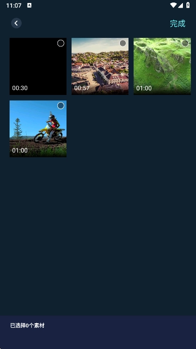 2、您可选择视频编辑或图片编辑,挑选您想要编辑的视频,点击“完成”。