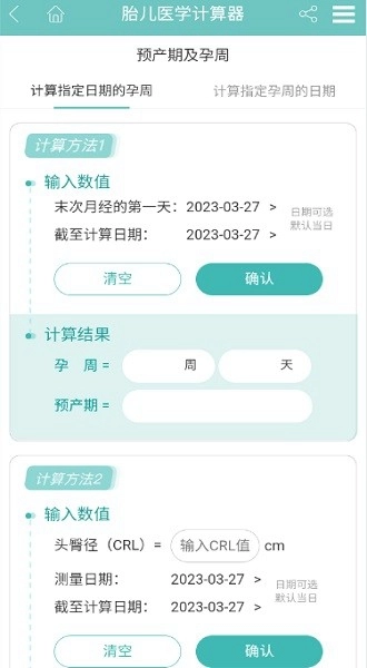 预产期及孕周计算: 仅需输入日期,即可计算预产期及孕周。
