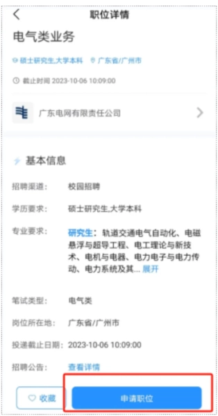 2、进行岗位志愿投递。可在“招聘岗位”页面,或者点击具体岗位进入“岗位详情”页面后,点击“申请职位”来完成岗位志愿的投递。