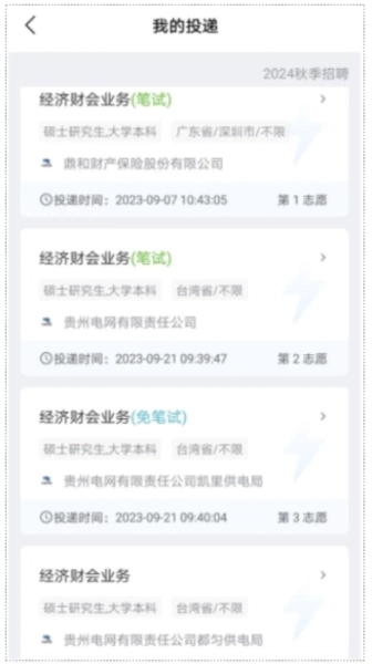 (2) 志愿顺序依据投递时间顺序确定,最先投递的岗位就是第一志愿,后续依此排序。
