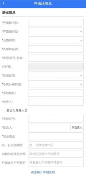 4、按照提示内容填写养殖场负责人的相关信息。