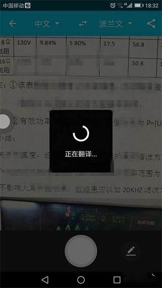 5、举个例子,若要将中文翻译成波兰语,点击拍照后,系统便会自动执行翻译操作。