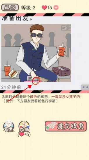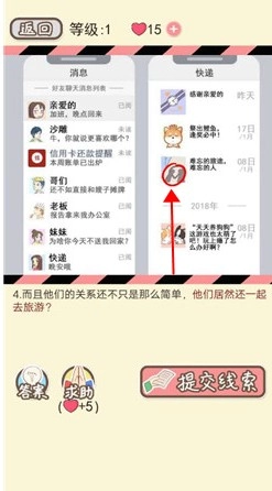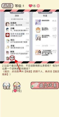 2. 在左侧寻找到标注为“快递”的人物头像,然后提交相关联的线索。