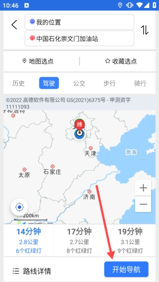 3、于导航界面确定起点与终点后,点击【开始导航】按钮,依照导航的指引朝着目的地行进。