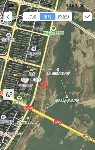 2、挑选一种测距方式,完成测量后点击保存,在地图上点击绘制好的线,就能显示相应距离。