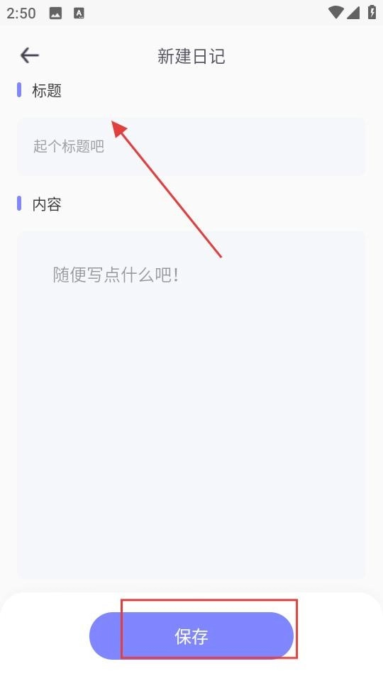 2、进入新建日记编辑页,先在标题栏输入日记标题,再在内容栏填写想记录的文字。