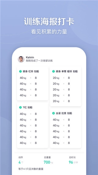 4、超便捷的训练记录搭配组间休息计时器,助你清晰见证自身进步轨迹。