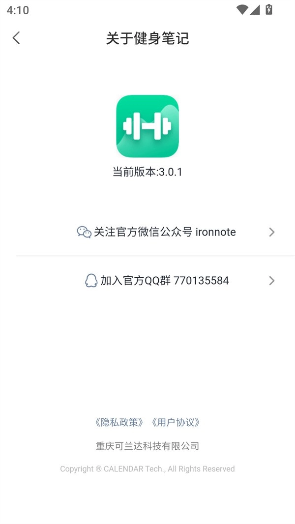 5、进入“我的”页面,点击“关于健身笔记”,即可查看用户协议与隐私政策。