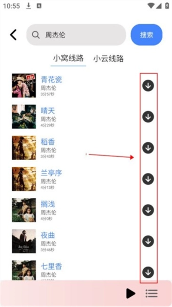 3. 寻找到想要缓存的歌曲,随后点击其右侧的按钮。