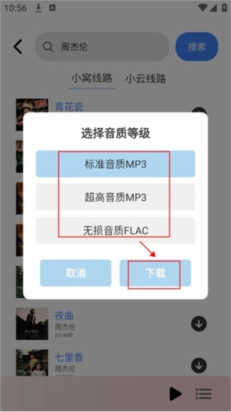 若歌曲并非mp3或flac格式,请尝试其他音质。