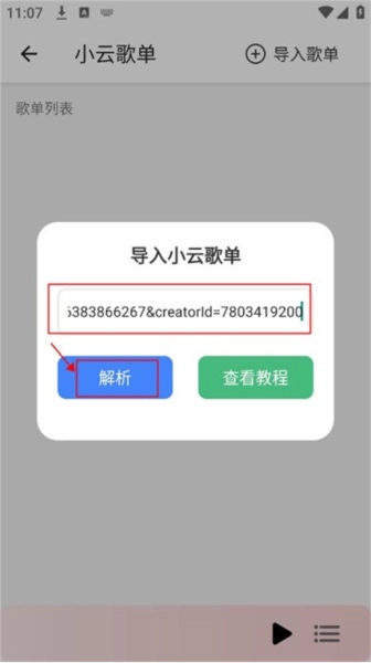 6. 把刚刚复制的歌单链接粘贴进去,随后点击“解析”。