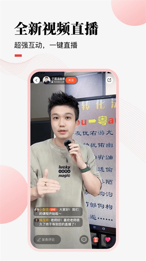 授课期间,学员评论弹幕出现;评论上墙,直接对话讲师;红包赞赏,感恩知识传递;师生互动,活跃课堂