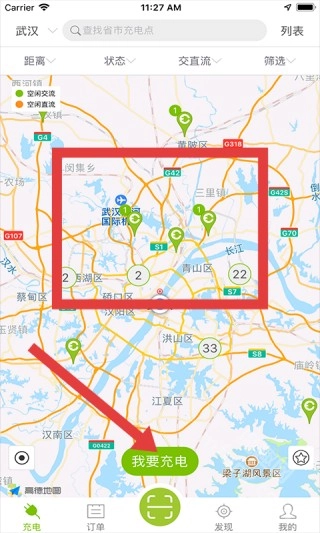 1. 打开畅的充电页面,地图上会标注出武汉的各个充电点,支持筛选查找。点击“我要充电”,就能快速定位并使用充电服务。