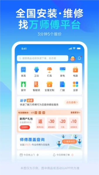 涵盖家具、卫浴、智能锁、晾衣架、灯具、定制家具、门以及家装等众多家居品类,无论是安装、维修还是测量,均游刃有余。