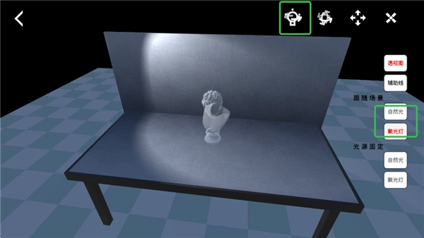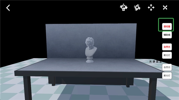 2. 完成选择后进入,点击“透视图”,便能呈现静物的透视状态。