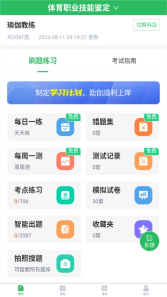 教练资格题库涵盖多种学习与做题模式,包括模拟考场、历年真题练习、每日一练、快速练习、考点练习、考试押题以及做题记录等,以丰富多样的方式,陪你一同备考教练资格。