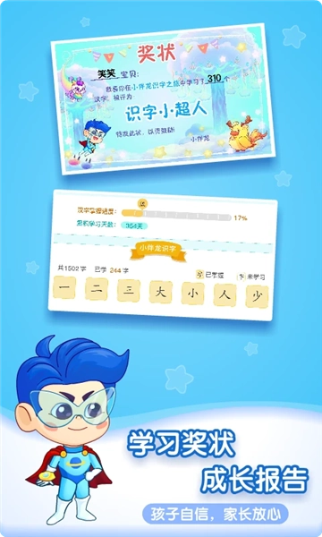 小伴龙识字是深圳市有伴科技有限公司推出的一款非常好用的识字软件,专为儿童打造。在这里,孩子可以充当故事主角与小伴龙一起学习、探险、完成任务,享受求知和探索乐趣;小伴龙还会唱儿歌、跳舞、背唐诗,全方位陪伴孩子成长。软件支持图片识字、拼音、汉字组词、写字等多种形式,满足各个年龄段孩子的识字需求。让孩子可以更好的学习汉字,为未来的学习打下更好的基础。软件以游戏的形式减轻了学习的压力,让学习更加有趣。有需要的朋友欢迎使用!