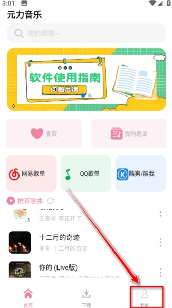 1. 开启元力音乐,轻点右下角的“我的” 。