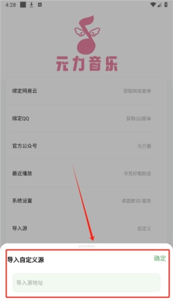 3、点击之后,输入音乐源的地址,再点击确定,就能完成导入。