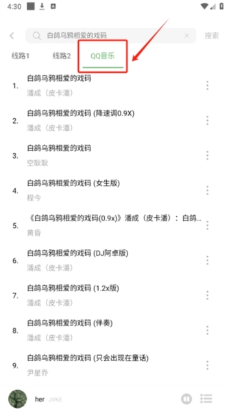 4、当导入操作成功完成后,去搜索自己心仪的歌曲,此时就能看到已导入的音乐源。