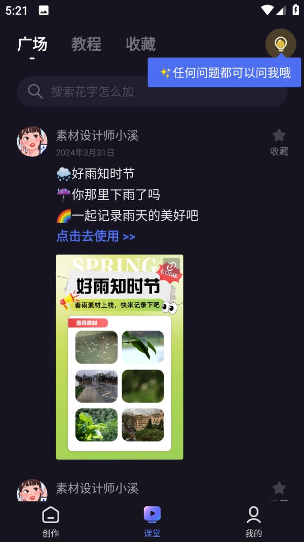 2、素材推荐:软件内拥有海量精彩贴纸供你使用,这些贴纸十分可爱。不仅如此,软件还具备花字音效智能匹配功能。