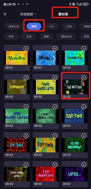 3、来到转场界面,挑选合适的转场图。