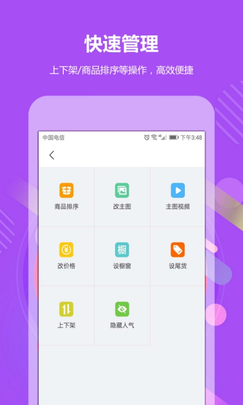 4、高效管理:商品上下架、排序等操作,便捷快速
