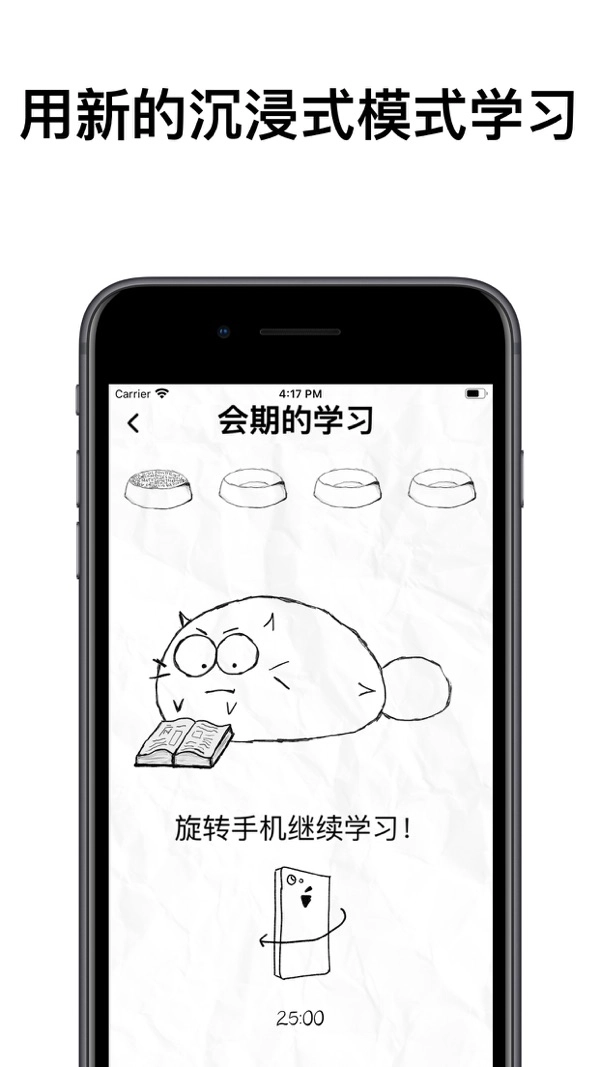 fatty cat,这里为用户们带来的是这款可以让你轻松学习的伴学软件,软件拥有强大的伴学功能,在一个人做功课无聊的时候就可以使用这款软件,软件中你可以制定一个学习计划,在学习的倒计时结束之后你可以在软件中放松一下,这里拥有很多可爱的猫咪角色可以选择与你伴学哦!