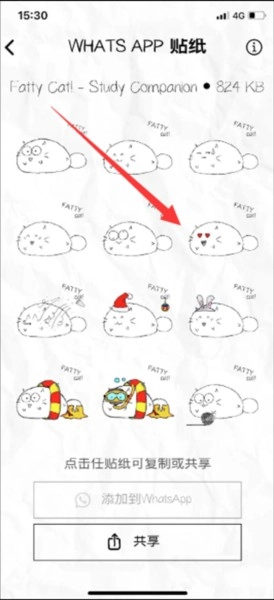 3、打开后在页面里找到喜欢的贴纸,点击打开该贴纸