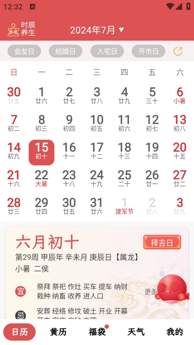 日历涵盖内容:黄历的宜忌事项、各类节日与节气信息、吉日的查询功能、旧历的查询服务。