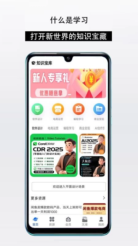 知识宝库,这款综合性线上学习软件,汇聚海量课程知识。它致力于为用户打造便捷且全面的学习服务,无论何时,你都能在应用内轻松找到感兴趣且契合自身的课程进行学习,助力你高效提升水平、增强实力。课程内容丰富多样,软件设计、电商运营、编程学习、商业变现、AI 创作等课程应有尽有,充分满足每位用户日常对优质课程的学习需求,让你畅享贴心畅快的服务。不仅如此,知识宝库还为用户准备了大量文库资源,涵盖众多板块,用户可随意查找挑选,学习毫无后顾之忧。感兴趣的小伙伴,快来知识宝库最新版,一同开启便捷学习之旅,享受学习的乐趣吧!