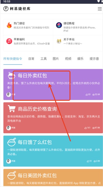 柯基捷径库,一款超好用的安卓手机工具箱软件。软件内提供诸多热门捷径,助你快速完成各类操作,无论是生活琐事还是工作任务,都能轻松应对。像快速抢外卖红包、查询商品历史价格等实用功能应有尽有,等你来探索使用,助力你更高效地做事。此外,软件还贴心配备捷径制作教程,用户可自行DIY专属捷径,精准实现个人指令,大幅节省工作时间。