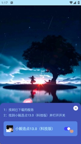 1、开启小毅连点器13.0科技版,第一步请同意服务权限。