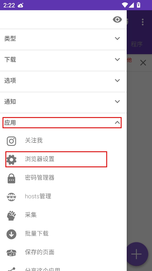 1、于首页点击上方的三条横线,以打开侧边栏弹窗,接着点击侧边栏里应用下方的浏览器设置
