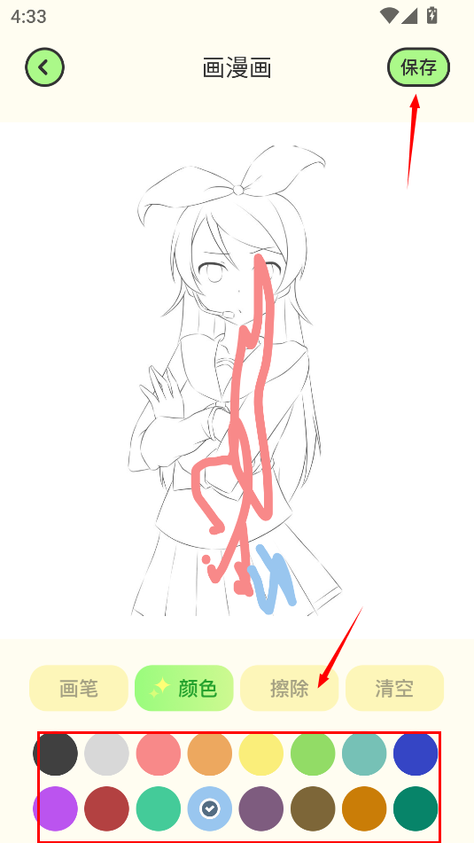 2、使用下方的操作栏进行上色编辑,然后保存即可