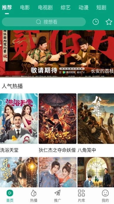1. 进入首页,即可查看今日推荐、热播榜等内容。