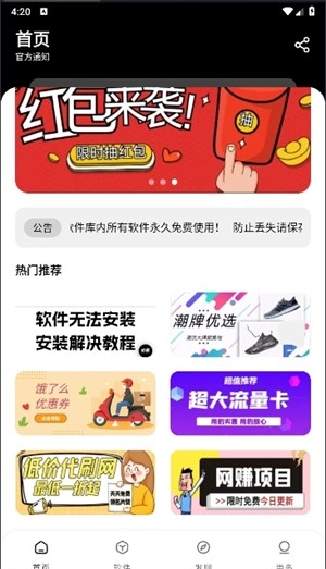 2、打开软件并进入,在首页能够看到多种多样的软件资源。