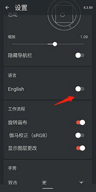 3、把页面拖至最底部,关闭“English”按钮就行。