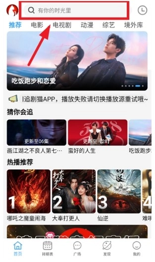 1. 开启追剧喵,于首页顶端的搜索框内输入心仪的电视剧名,例如【大奉打更人】