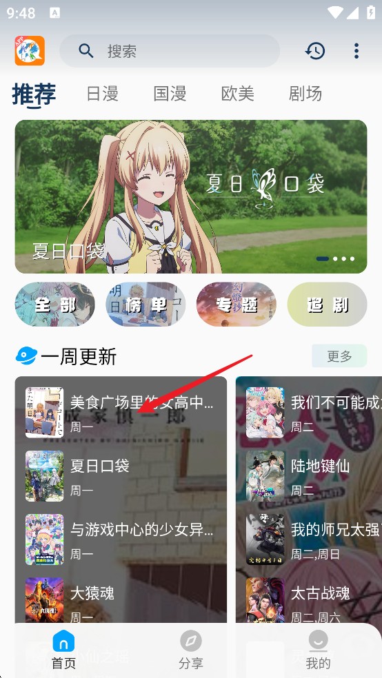 1、用户首先来到本站kk动漫,其首页拥有丰富的动漫资源,涵盖日漫、国漫以及欧美动漫等各类作品。
