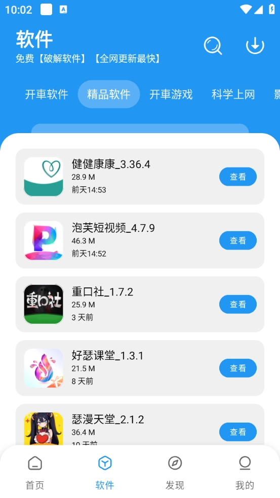 2. 来到“软件”页面,顶部栏里存在详尽的软件分类,涵盖工具类、影视类以及漫画类等。