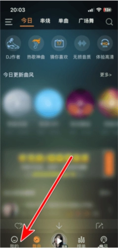 3、对音乐资源进行栏目划分,除“我的”栏目外,还设置“最新”“曲库”等栏目。