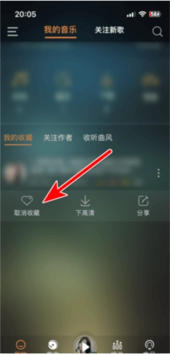 4、第四步:点击“取消收藏”选项,就能取消对音乐的收藏。