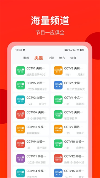 覆盖央视、卫视、地方台等各类频道,全方位满足用户多样化的观看需求。无论用户想看新闻资讯、综艺娱乐,亦或是体育赛事,都能在该App中找到对应的直播内容。