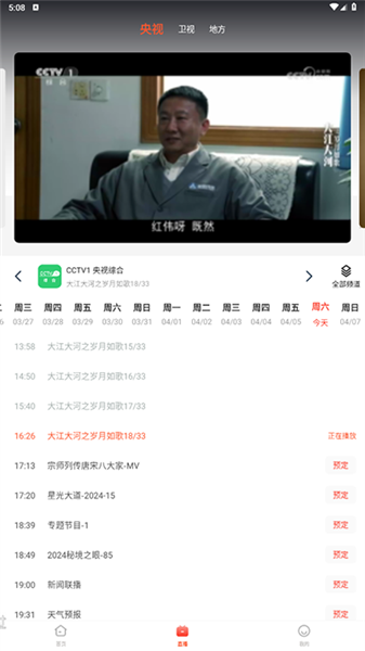 2. 在直播版块中,能够查看当前频道的节目播放清单。