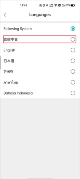 4、挑选“繁体中文”;该软件可支持繁体中文、韩语、日语、英语等多个国家的语言。