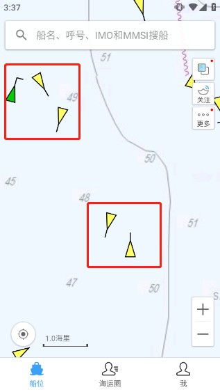 2、当放大至一定程度时,便能在地图上看到当前海域中的船舶。