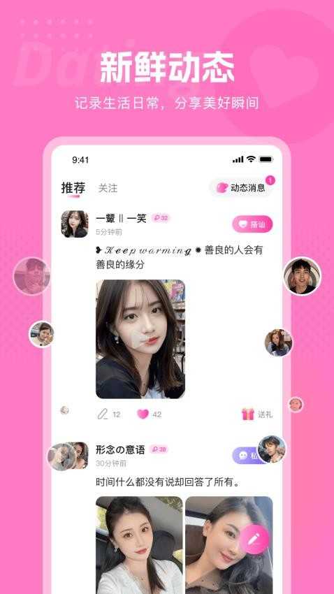 日常动态分享:发布日常动态、标记兴趣爱好,遇到那个懂你的TA!