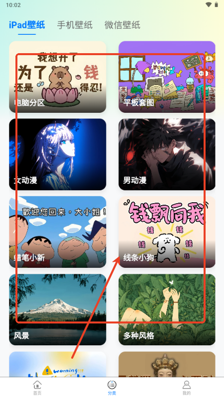 1、进入主页后选择自己感兴趣的壁纸栏目;